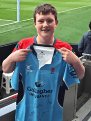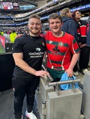 Finally, a tribute to one of the young referees. On March 28th, Toby had the honour of being the club’s flag bearer for The Clash at Saracens v Northampton today. Additionally, and in a surprise for him, Toby met the match referee, Anthony Woodthorpe who presented him with a signed jersey. “Woody” started his refereeing journey across the border in Hertfordshire so perhaps we will see Toby doing the same in the future!